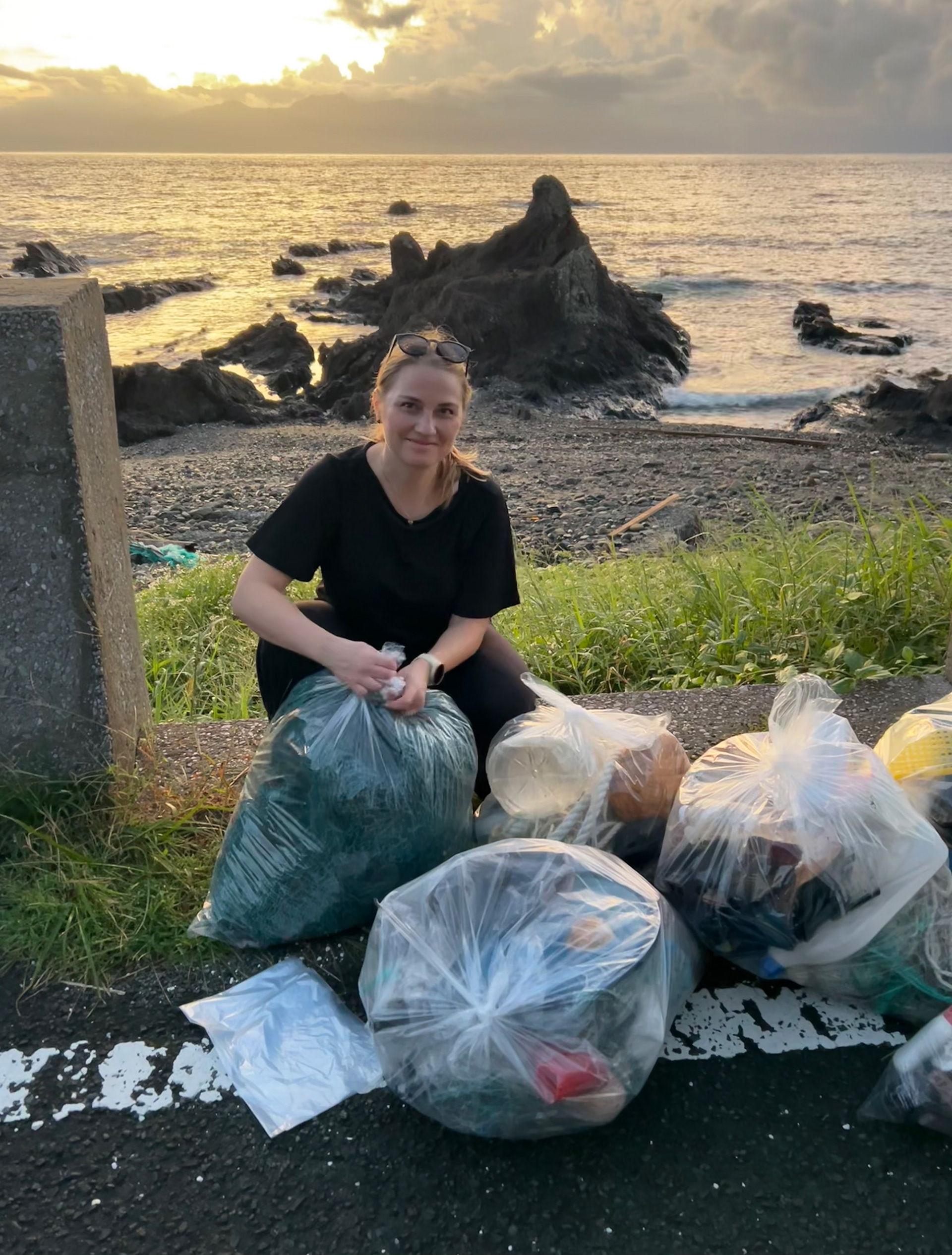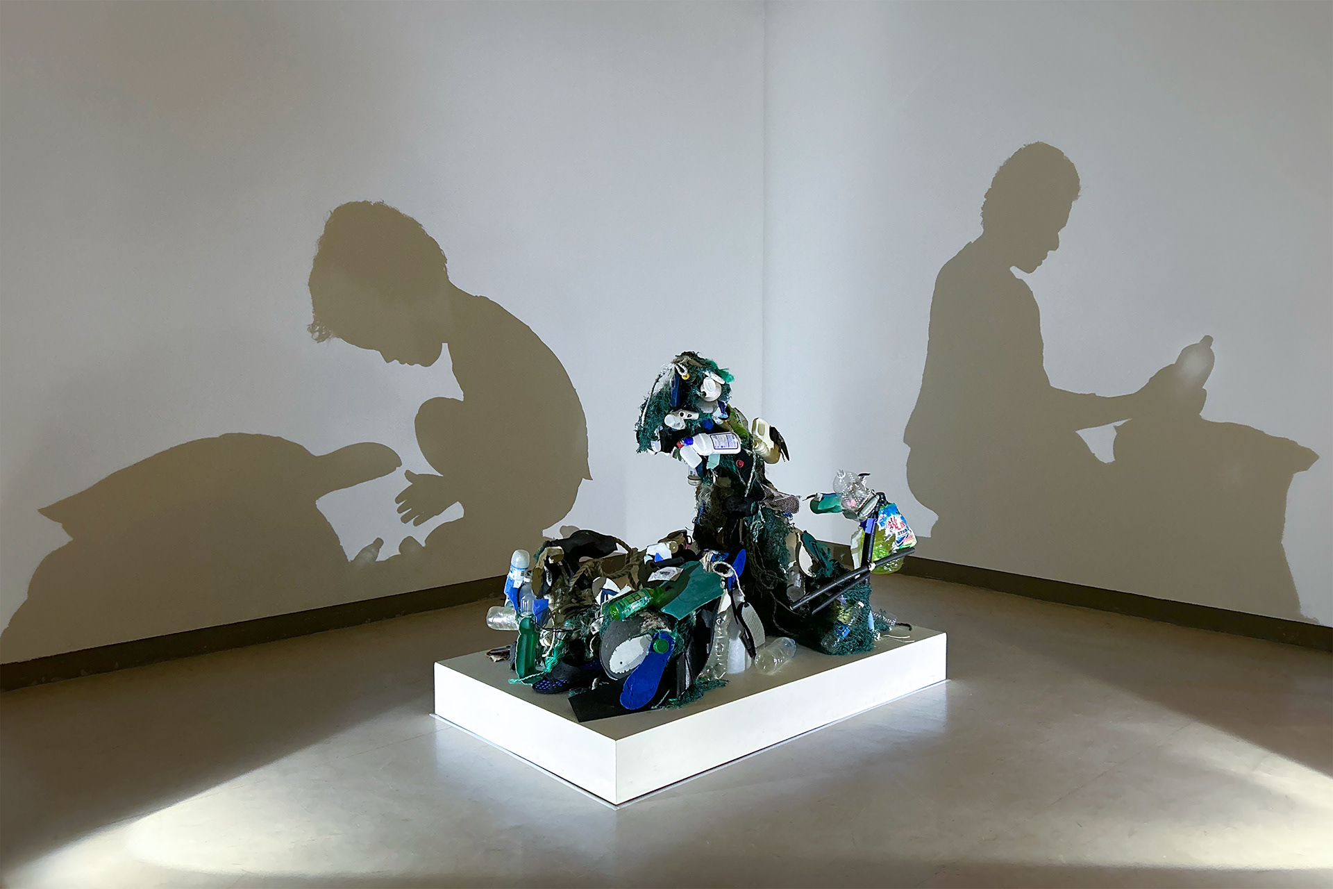 The work is created from plastic waste washed ashore on Tanegashima Island