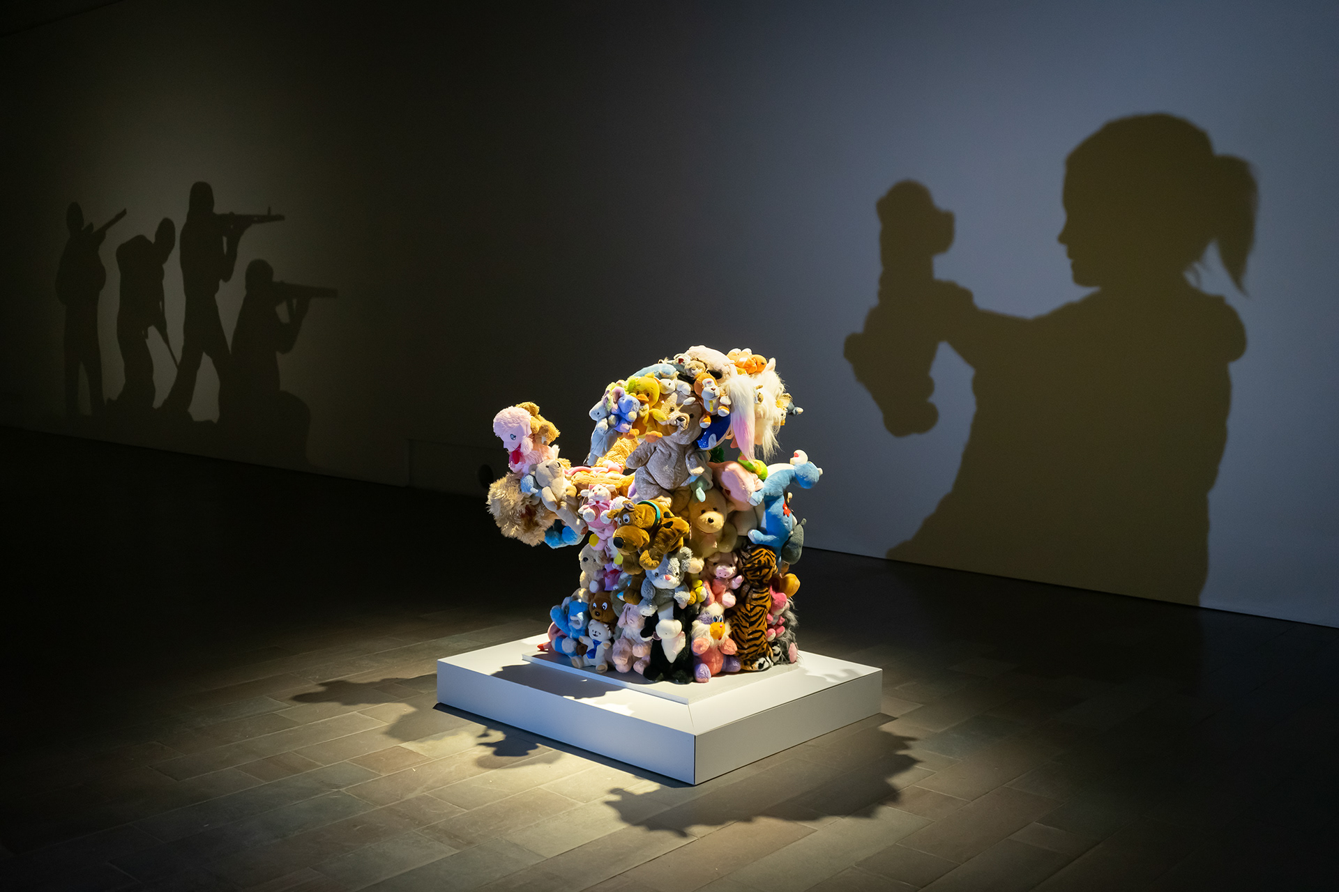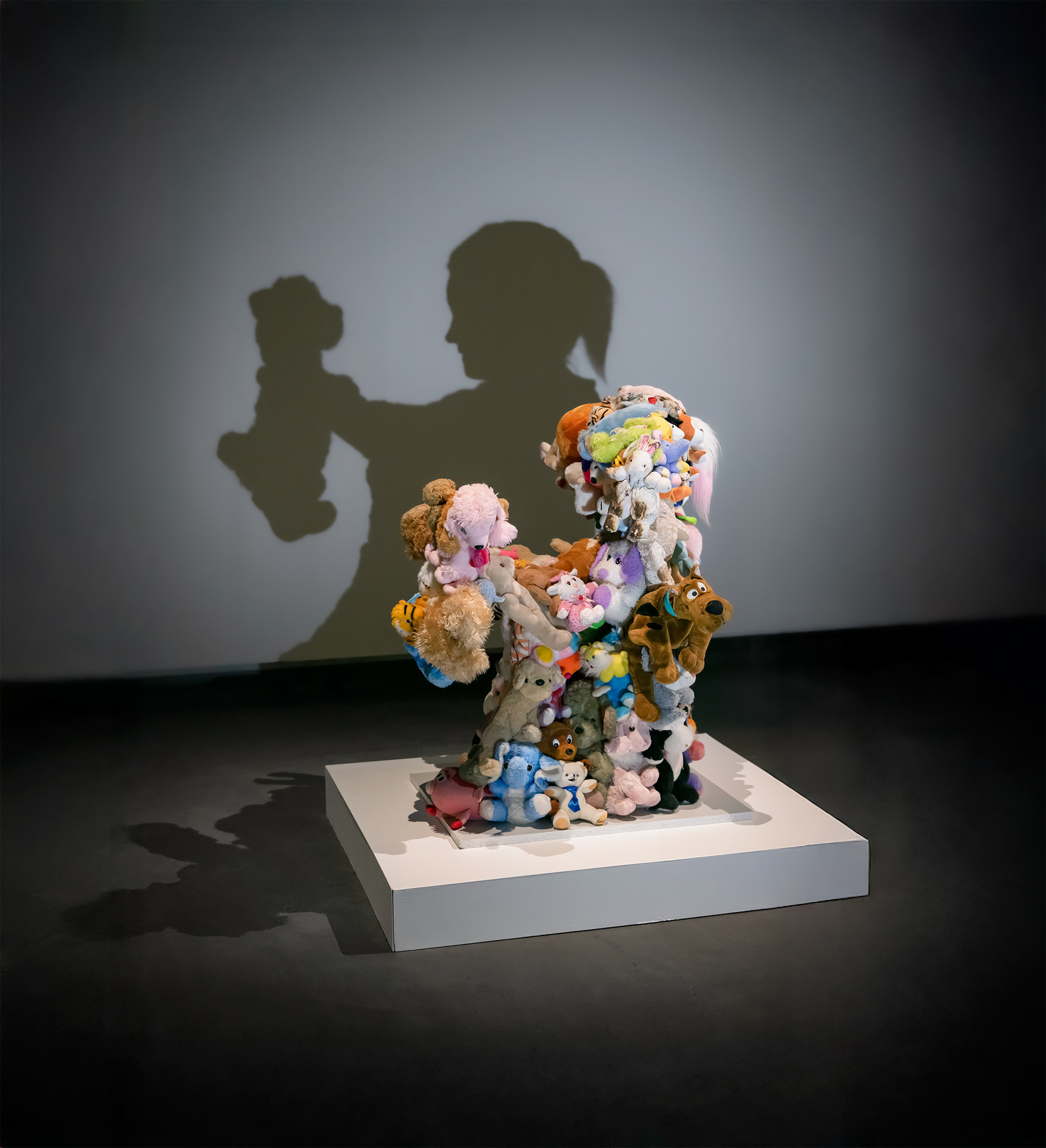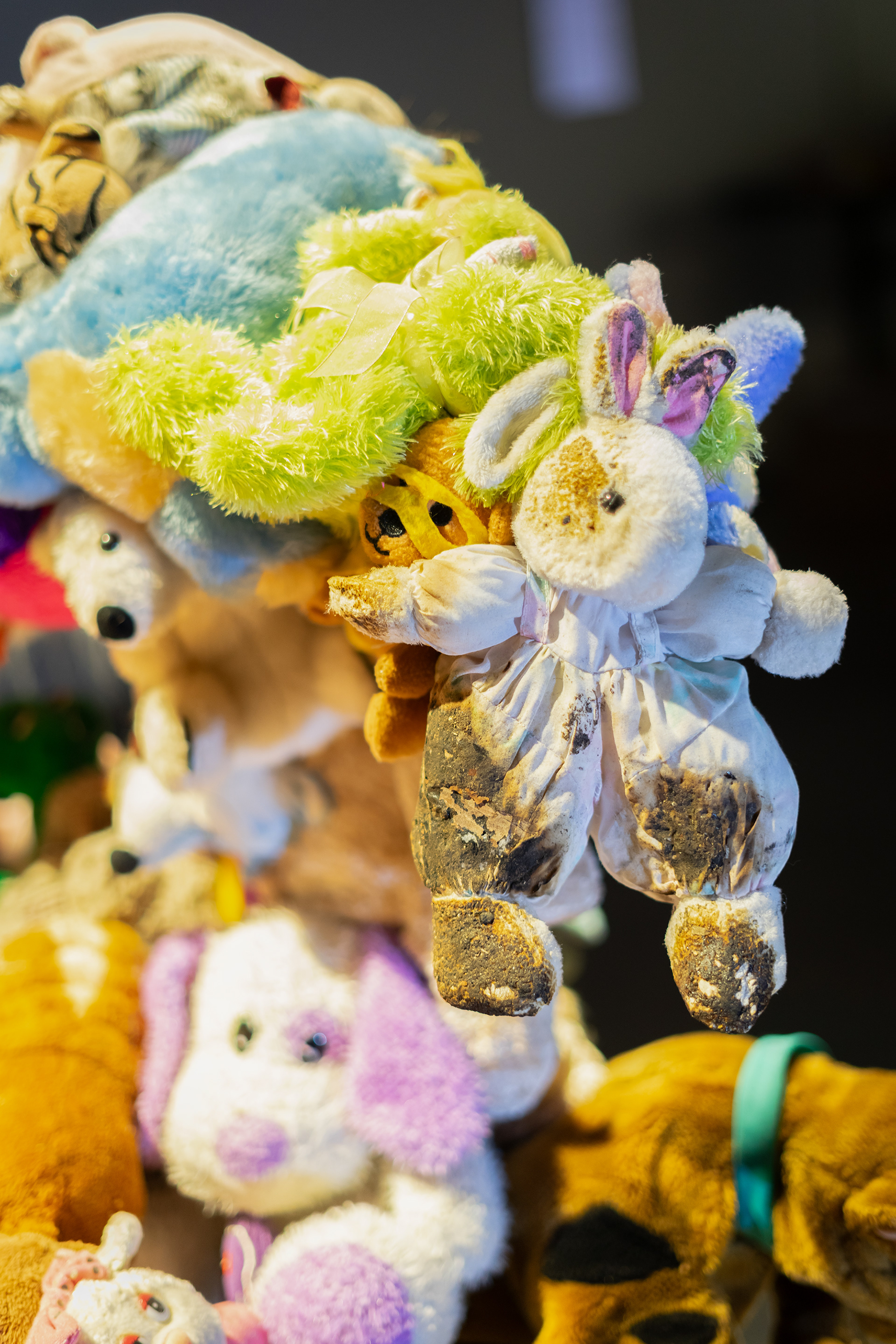 The toys for this work are collected by the Ukrainian charity Malyn Volonter from homes hit by bombs in Malyn, Morozivka, Mykolaiv and Borodyanka in Ukraine.